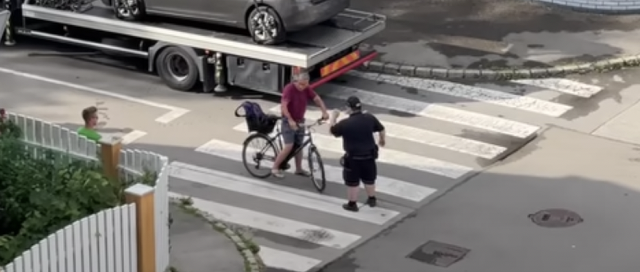Po spletu je zaokrožil posnetek, ki prikazuje kolesarja, ki se pogovarja z redarjem. Po nekaj sekundah slednji nasilno zgrabi kolesarja, ga potegne s kolesa in podre na tla, je razvidno s posnetka.