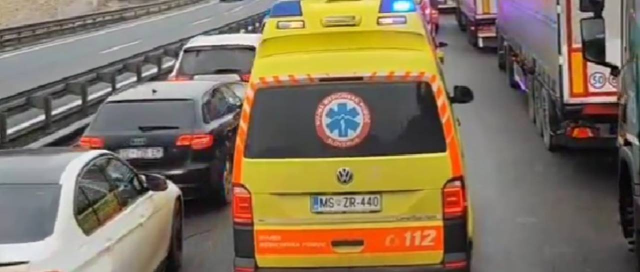 Na pomurski avtocesti je v prometni nesreči umrl voznik tovornjaka. Kljub temu da so vozniki naredili reševalni pas, so intervencijske službe obstale v zastoju.