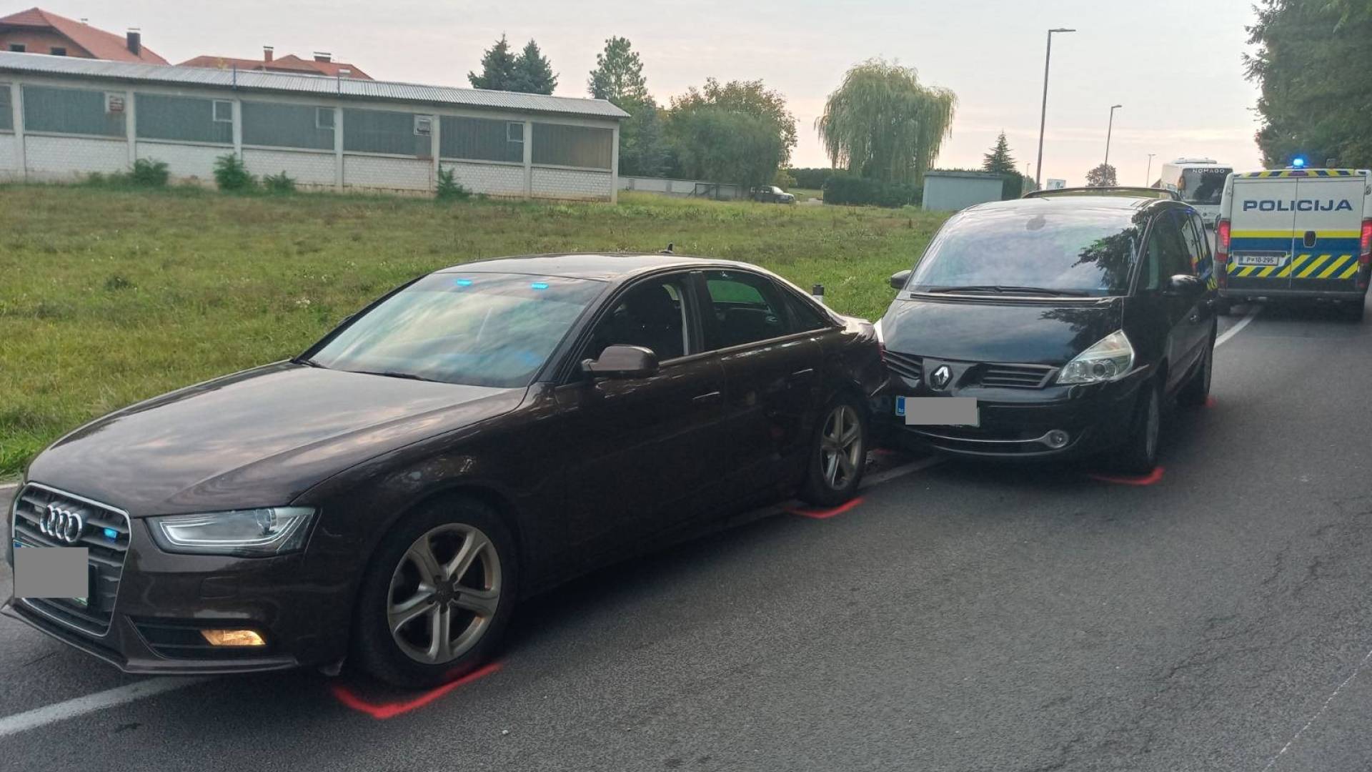 Policisti so to opazili in se ustavili. Enoprostorec brez voznika pa se je peljal še malo naprej in trčil v zadnji del službenega vozila policije.