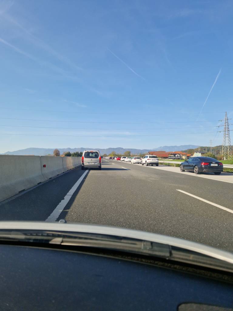 Voznike pozivajo k previdnosti, saj je nastal zastoj. Zamuda je desetminutna.