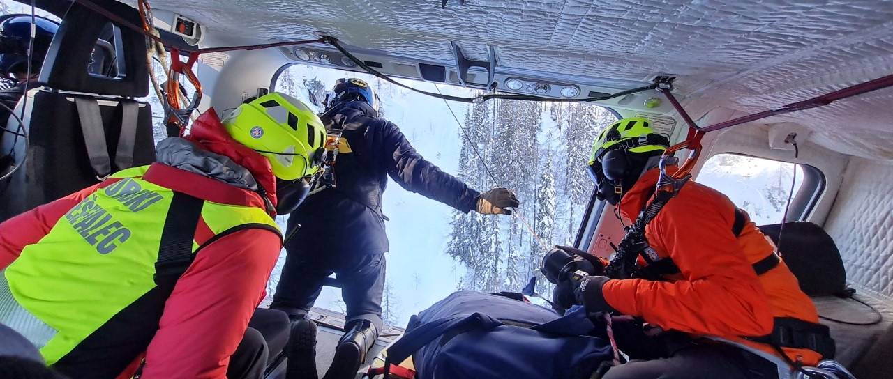 Z gorskim helikopterjem rešili tri pohodnike in smučarko, ki je z glavo trčila v skalo ter obležala