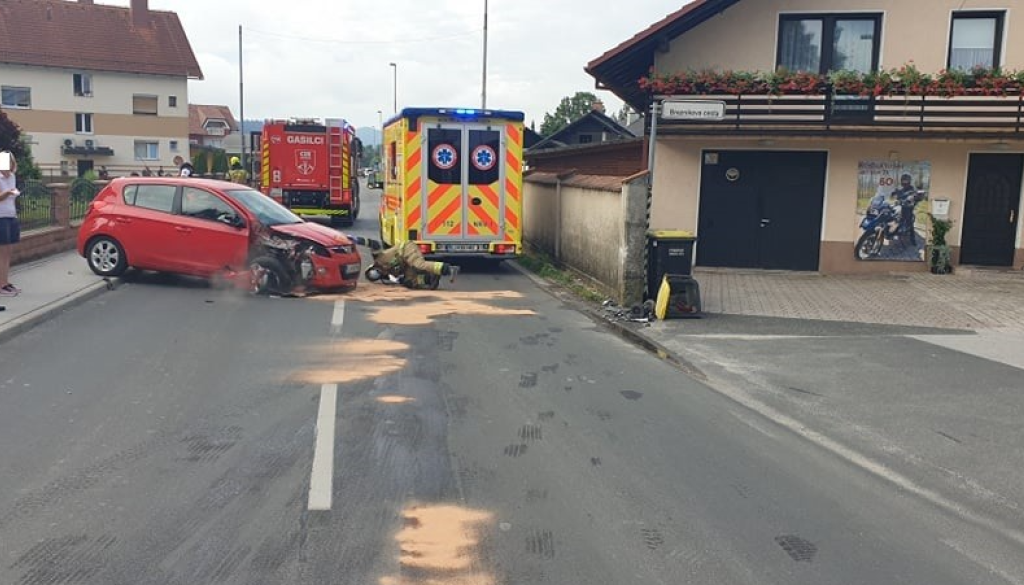 Nekaj minut pred 8. uro zjutraj je na Breznikovi cesti v Ihanu voznik osebnega vozila trčil v betonsko ograjo stanovanjske hiše, vozilo pa je po trku obstalo na cestišču.