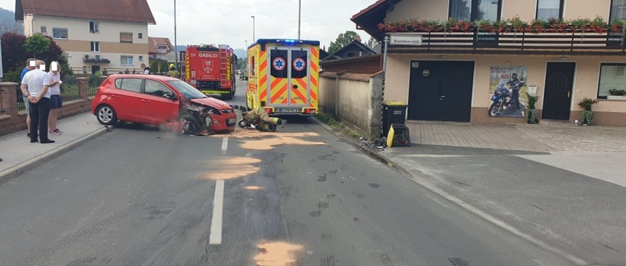 Na Breznikovi cesti je danes zjutraj voznik osebnega vozila trčil v betonsko ograjo stanovanjske hiše.
