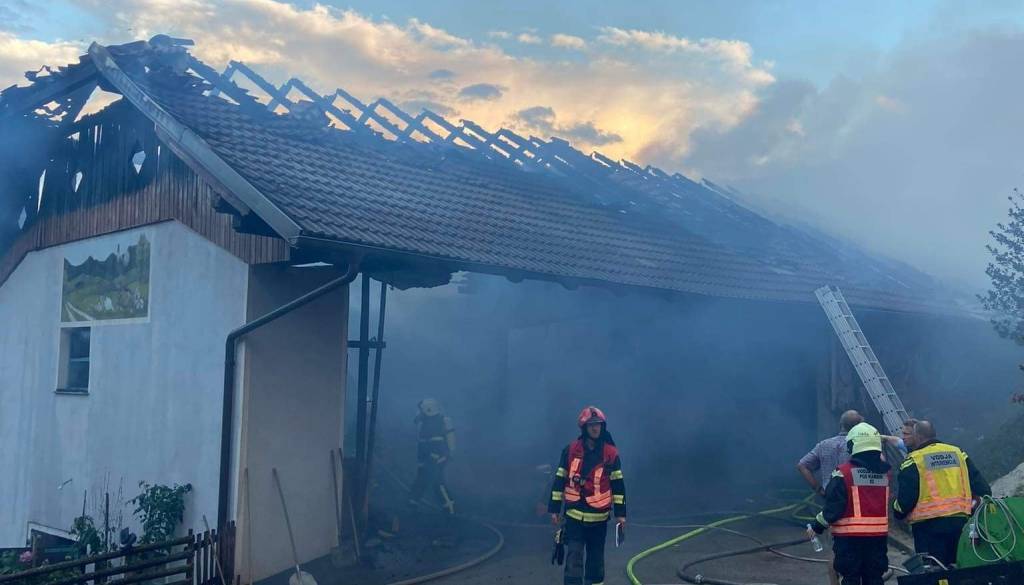 Na Velikem Hribu je zgorelo ostrešje gospodarskega objekta v velikosti 40 krat 20 metrov.