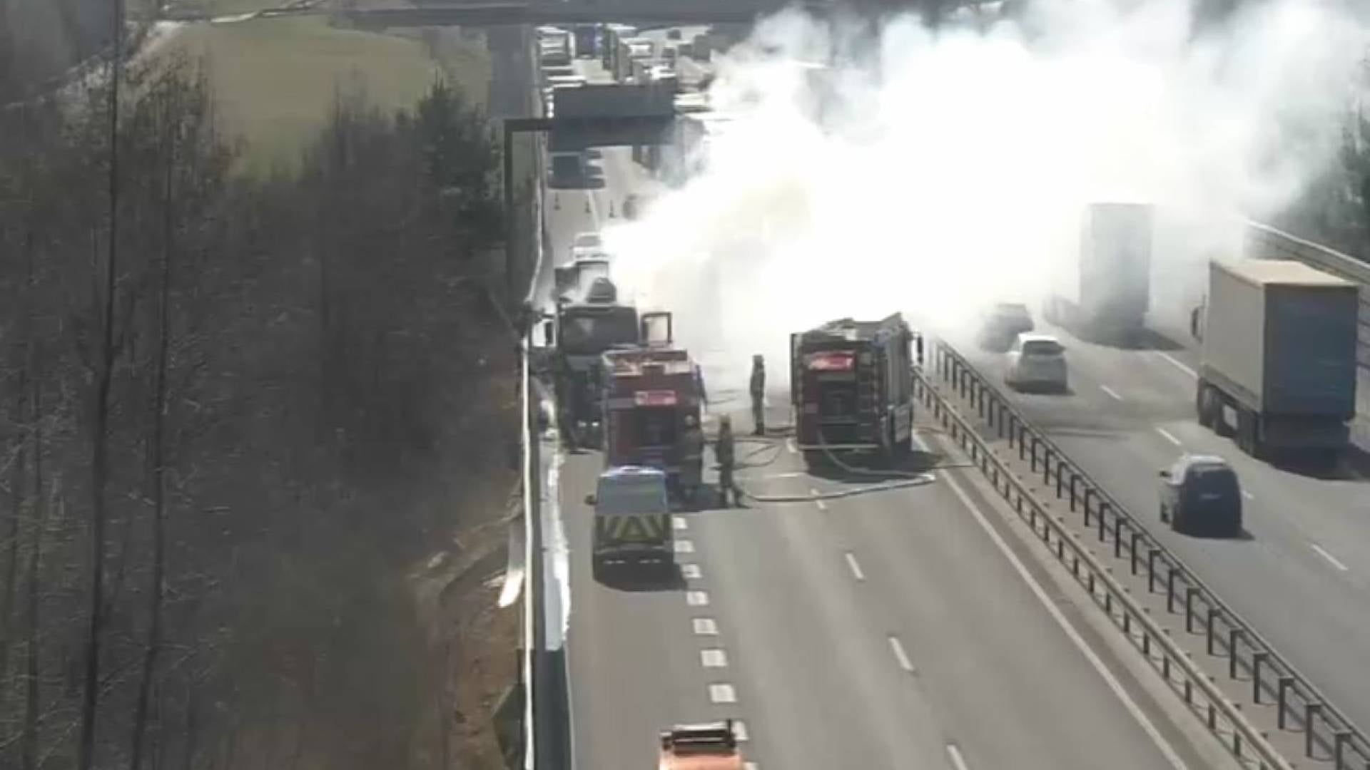 Po sedanjih ugotovitvah policije je 32-letni voznik tovornega vozila polpriklopnika s pripeto prikolico ustavil na koncu kolone motornih vozil.
