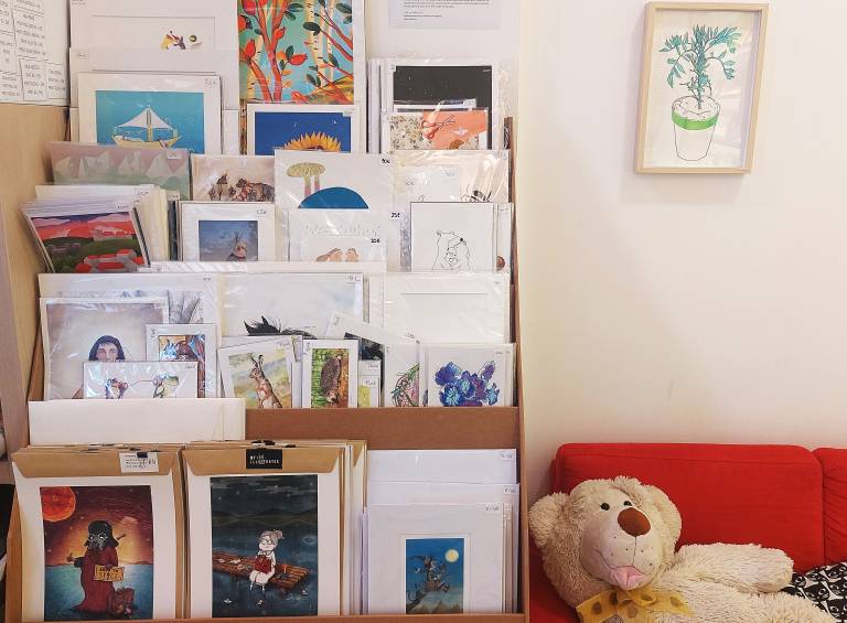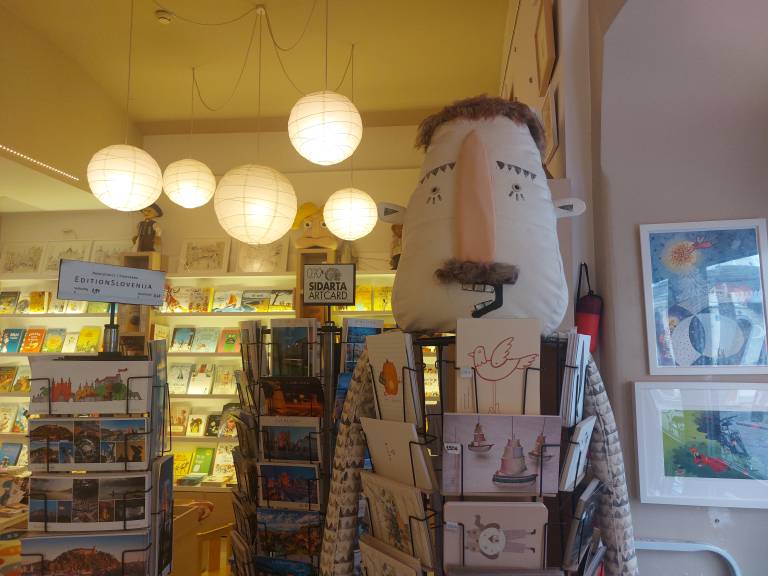 Poleg tega pa je knjigarna Lutkovnega gledališča Ljubljana neke vrste galerijski prostor, razstavlja namreč dela slovenskih ilustratork in ilustratorjev, ki so v knjigarni tudi na prodaj.