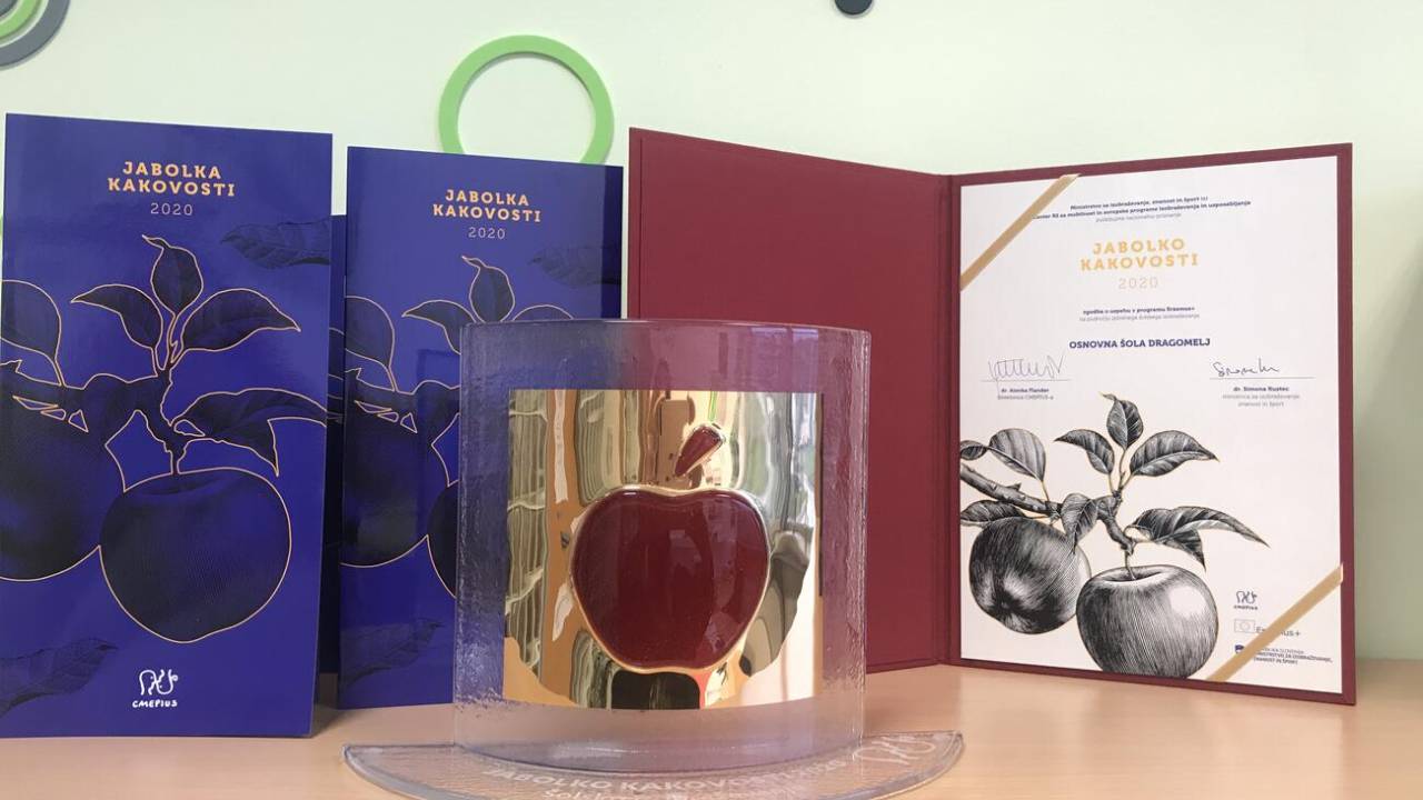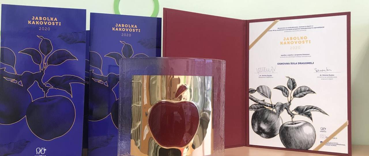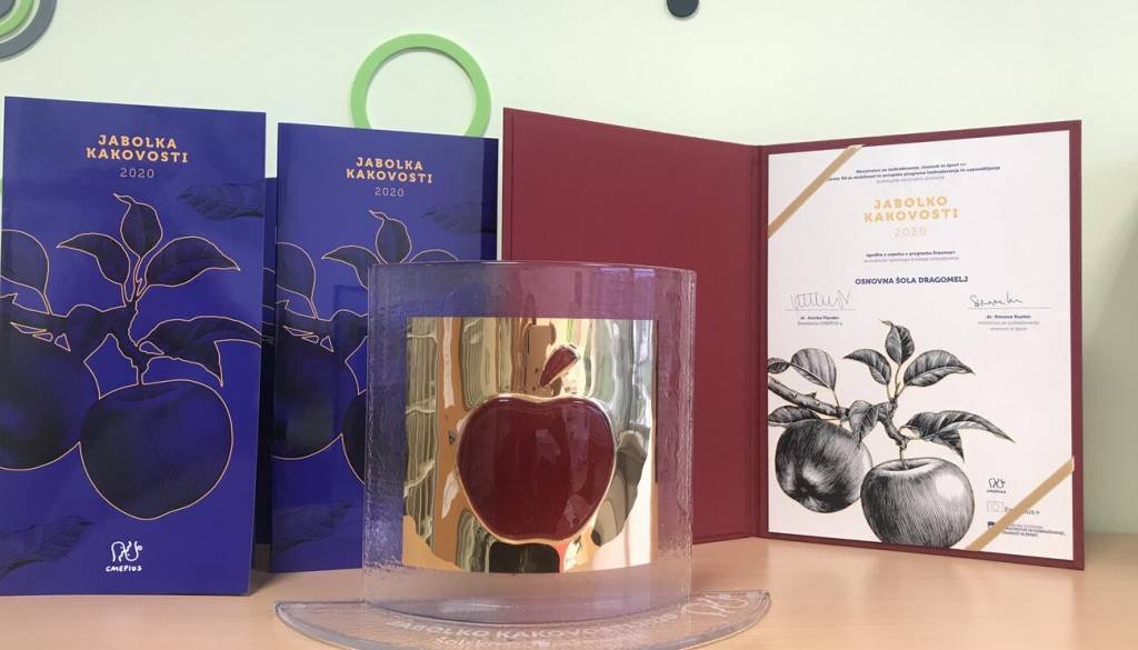 Osnovna šola Dragomelj je za projekt Ne štejemo let učenja, ampak koliko naučenega imamo v letih prejela nagrado Jabolko kakovosti na področju splošnega šolskega izobraževanja v letu 2020.