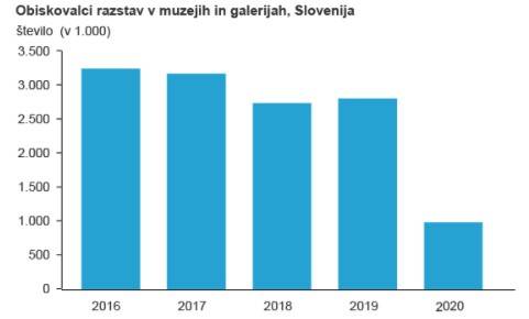 Podatki niso spodbudni. Namreč pandemija covida-19 je skrčila muzejsko in galerijsko dejavnost, in sicer po številu razstav v muzejih in galerijah za več kot tretjino in po številu obiskovalcev razstav za skoraj dve tretjini.