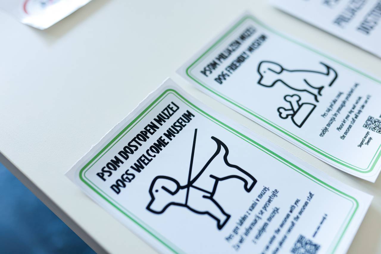 Obiskovalci lahko tako že ob vstopu v muzej ali galerijo vidijo, ali se jim bo pri ogledu razstave lahko pridružil tudi njihov pes, ali pa je zanj pripravljen poseben prostor, kjer bo lastnike lahko varno počakal.