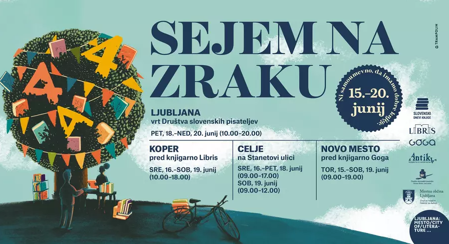 Od 18. junija do 20. junija se bo na vrtu Društva slovenskih pisateljev odvijal Sejem na zraku, kjer bo 50 založnikov ponujalo sveže knjižne izdaje s popusti.