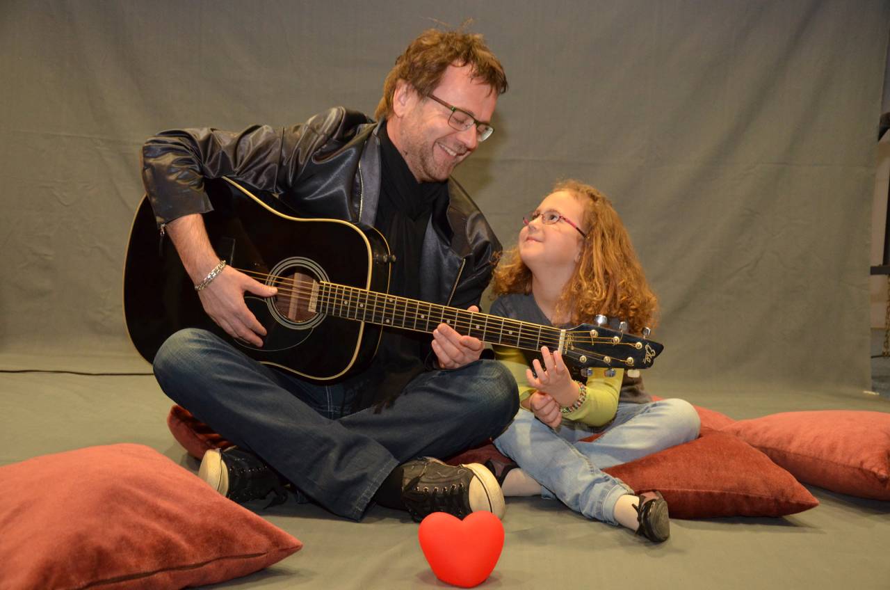 "Tule sva s hčerko Zaro fotografirana za dobrodelni koledar leta 2013. Zara je končala osnovno glasbeno šolo za klavir in sedaj hodi na solo petje. V času izolacije sem jo naučil šestih akordov na kitari in zdaj redno brenka. Ritmiko ima boljšo od mene, tako da je nimam kaj več za naučiti. Vesel sem, da ima talent za glasbo, sem prav ponosen očka."