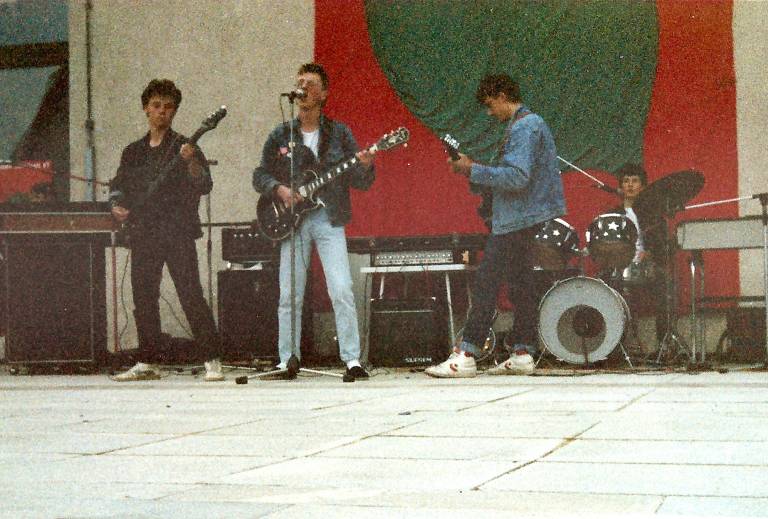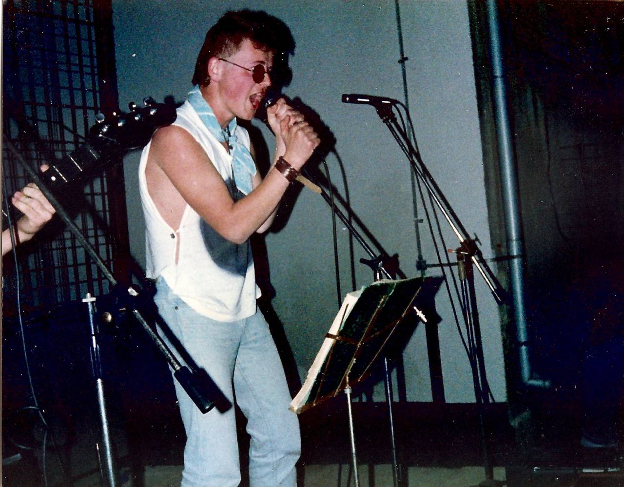 "Pankerji za dan mladosti! 1987 v skupini Sing Sing. Egon je na kitari, Dimek je na bobnih, na basu pa je Boris Kidrič, ki danes igra v narodno-zabavnem ansamblu Aplavz. Tukaj smo na nastopu v Šmarju za dan mladosti. Do takrat smo že posneli dve avtorski skladbi v studiju, Dom cesarjev in Železni križec, ki sta bili precej infantilni, a sta imeli precej politični besedili o nasprotovanju avtokraciji. Lahko bi rekli, da smo se malček šli pankerje. V prvi vrsti so sedeli vojaški oficirji, ki so se pobrali že med uvodno skladbo." (smeh)