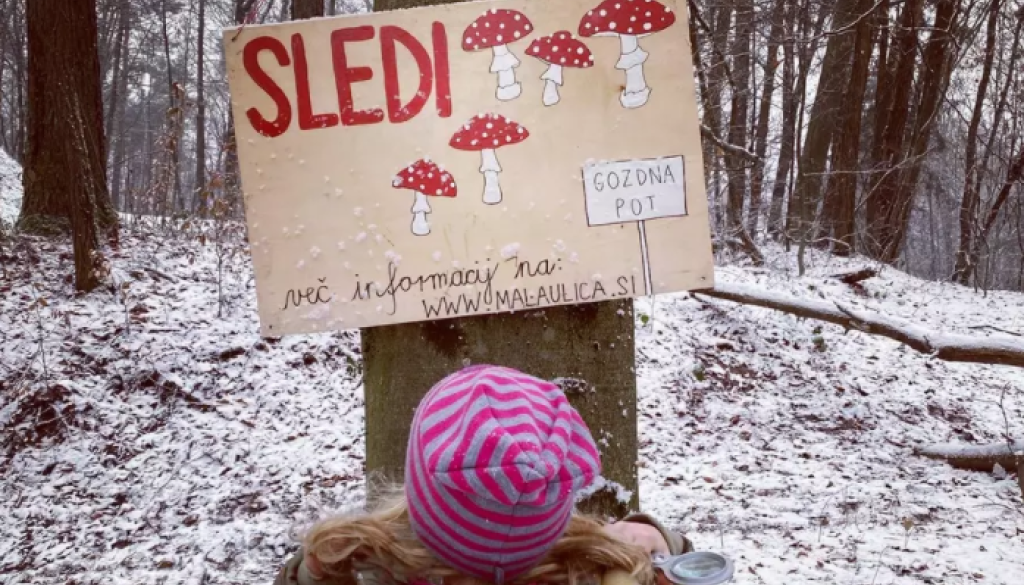 Družinski center Mala ulica vsak petek z živo rdečimi mušnicami začrta gozdno pot, ki ima polno raznolikih izzivov in nalog. Konec tedna organizirajo tudi vodene gozdne sprehode, kjer z izkušenimi pedagogi raziskujejo gozd.