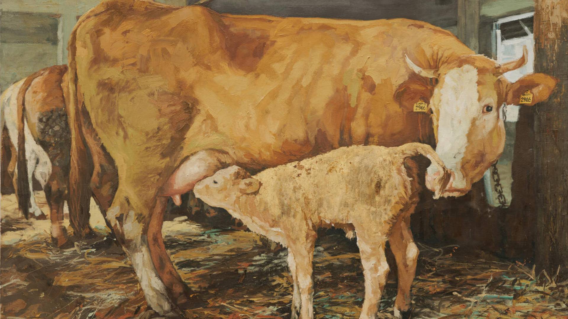 »Ko se gledalec sprehodi mimo slik krav v naravni velikosti, se sprehodi tudi mimo slovenske zgodovine: ruralne, pretežno temačne, monotone, vklenjene in okupirane. Nato pa se iz temačnejših in nenasičenih tonov v novejša dela postopoma prikradejo zelenje, zlato, ptice, bujne barve, vezenje in pisane tkanine,« še piše v sporočilu za javnost.