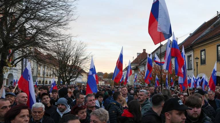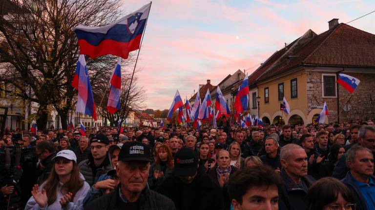 18.25 Glavni trg v Novem mestu je nabito poln, po nekaterih ocenah naj bi se zbralo okoli 10.000 ljudi, navaja STA.