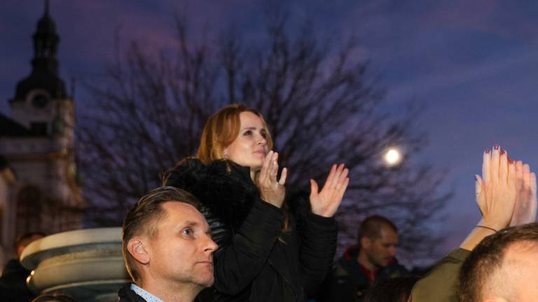 19.00 Po dveh urah od začetka izredne seje je Glavni trg v Novem mestu še vedno poln.
