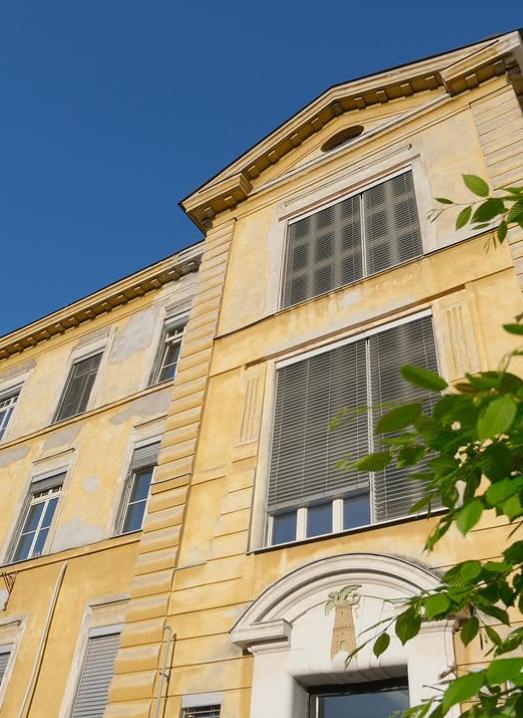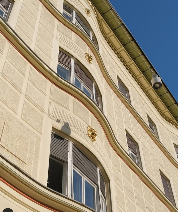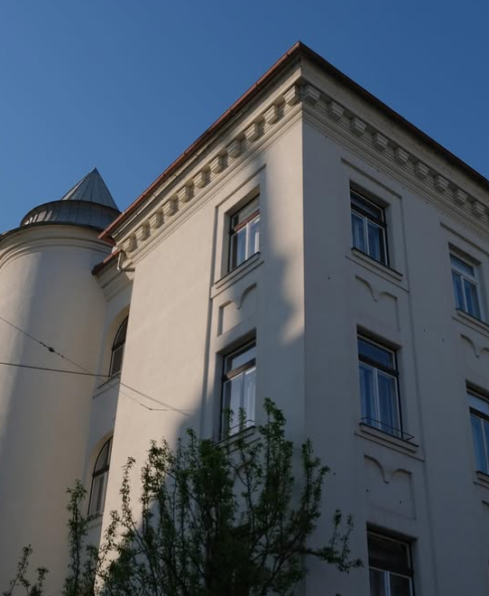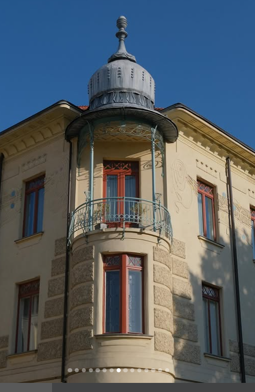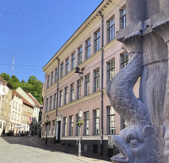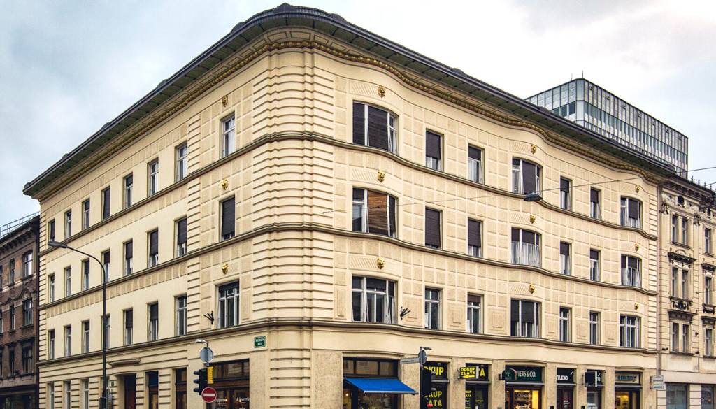 Palača, ki stoji na vogalu Miklošičeve in Dalmatinove ulice, je izraz arhitektovih prizadevanj za večjo povezanost arhitekture in njenega okolja.