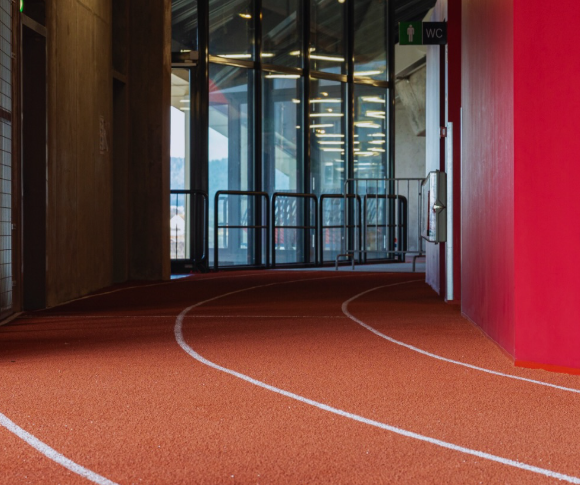 Na rdečem nivoju Dvorane Stožice je zdaj pravi atletski raj, imenovan 'Atletika mode', ki športnikom omogoča 340-metrsko stezo za sprinterje in srednje proge, primerna za vse vrste treningov, stezo za skok v daljino s posebno doskočno blazino, ki zagotavlja varnost in optimalne pogoje za izboljševanje rezultatov in še dodatne prostore za ogrevanje in pripravo atletov.