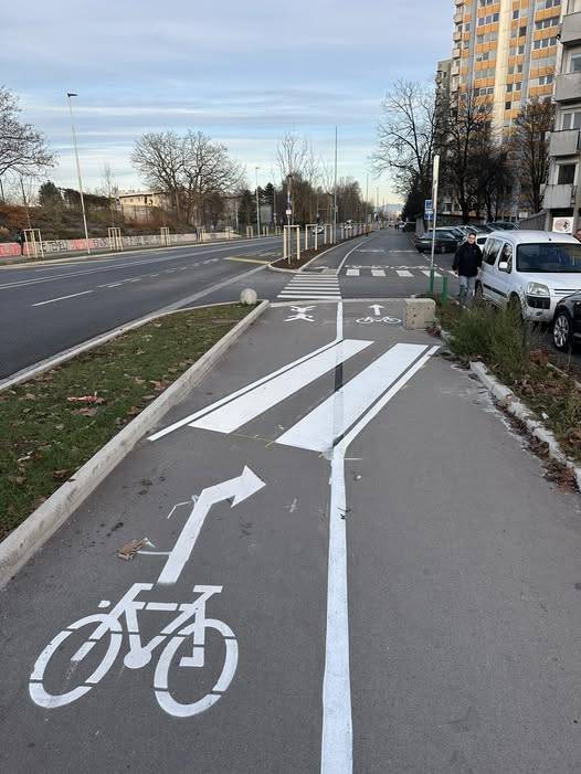Podoben problem je tudi na prehodu čez Dunajsko cesto, kjer se križajo kolesarske poti, namesto da bi bile smeri urejene brez konfliktov.