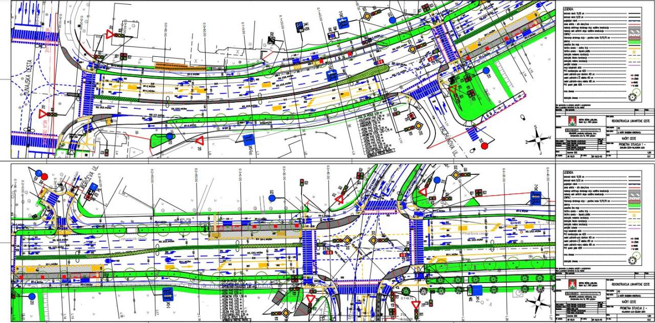 »Linhartova« bo tudi po križišču z Železno ohranila dva pasova v vsako smer, s tem da bo rumeni rezerviran za avtobuse.