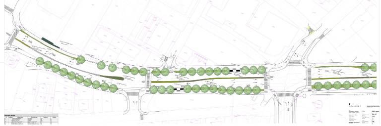 Med Železno in Topniško bodo površine za kolesarje in pešce od vozišča ločene z zelenico in drevjem, zelene površine pa bodo tudi med tistimi, namenjenimi kolesarjem in pešcem.