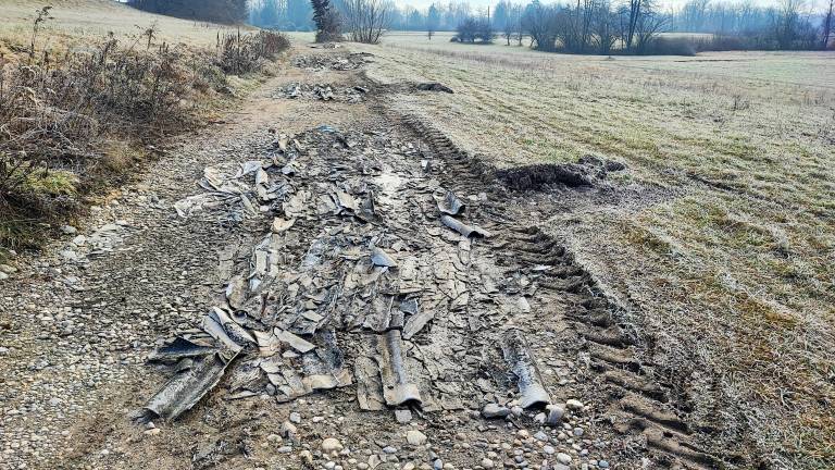 Povedal je, da so azbestne plošče deloma nove, deloma pa starejše in že zdrobljene zaradi lokalnega prometa.