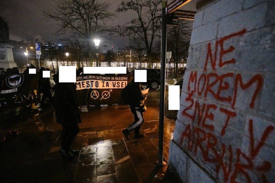 Meščan od občine pričakuje, da bo s podizvajalcem očistila grafite in račun za čiščenje poslala organizatorju protestnega shoda.