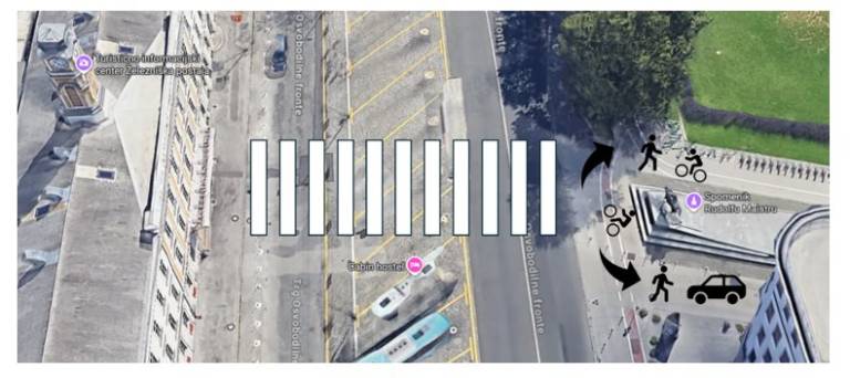 »V okviru nadaljnjih ureditev območja so predvidene rešitve, ki bodo omogočile bolj tekoč in varen prehod pešcev ter ustrezno ureditev javnih površin.«