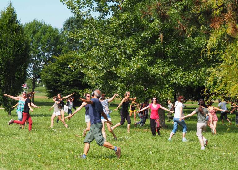 Prav tako iz Francije prihaja predstava Plesni korak, ki bo izvedena v parku na Ambroževem trgu ob Cukrarni (gostovanje je podprl Francoski inštitut v Ljubljani). Obe francoski predstavi bosta izvedeni v koprodukciji z Zavodom EN-KNAP.