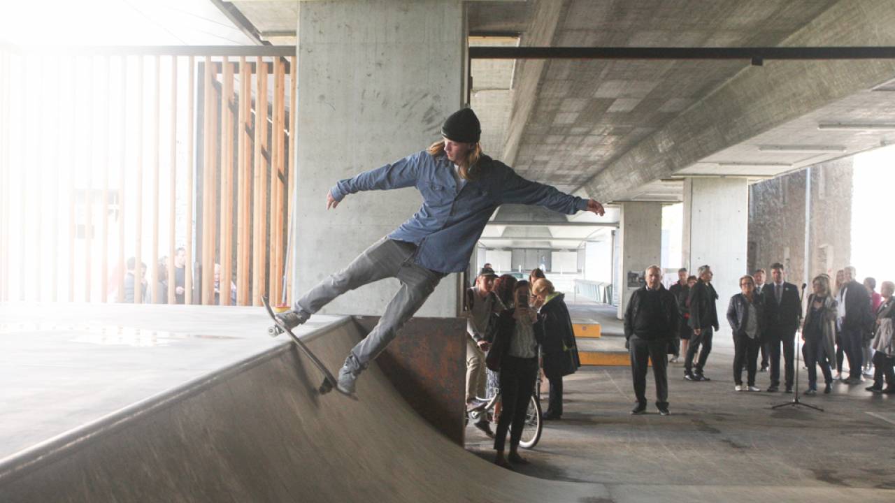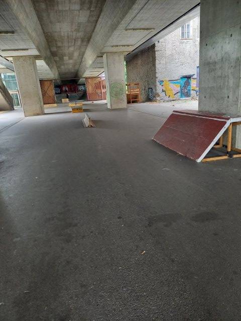 Med štiri stebre mostu so umeščeni polkrožna minirampa ter dva betonska elementa. A tam sta tudi pešpot ter kolesarska steza »in je skrajno nevarno, ker je klanec«.