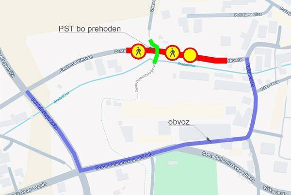 Zaradi prenove stopnišča, ureditve kolesarske poti na Poti spominov in tovarištva in izvedbe komunalne infrastrukture bo od 7. do najpozneje 16. julija za ves promet, tudi za pešce in kolesarje, zaprta Cesta na Vrhovce na odseku med Viško cesto in Potjo Rdečega križa.