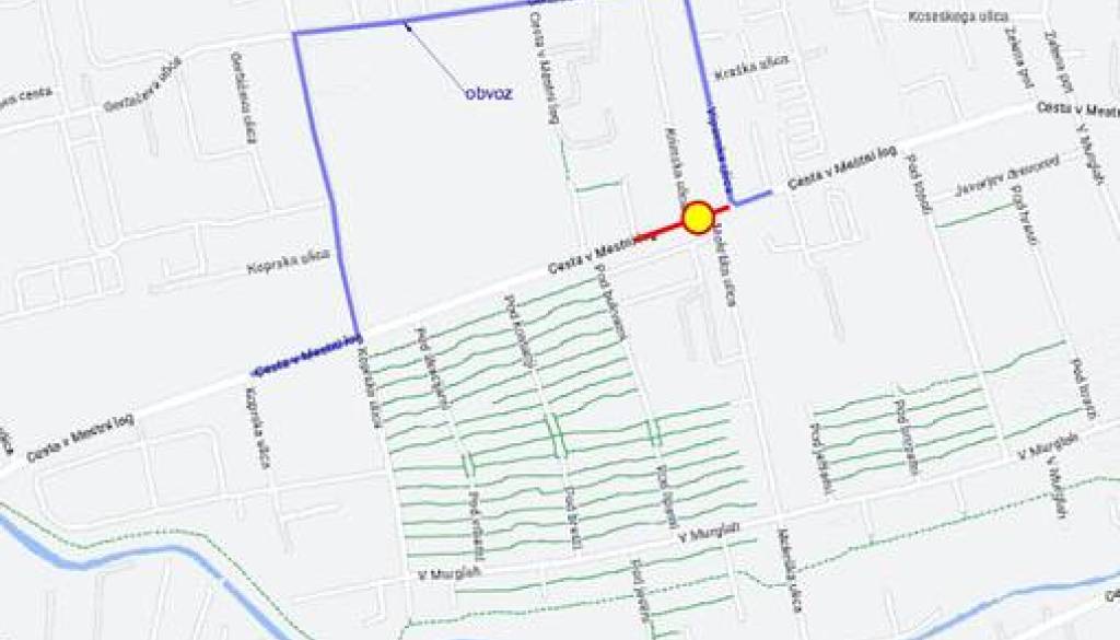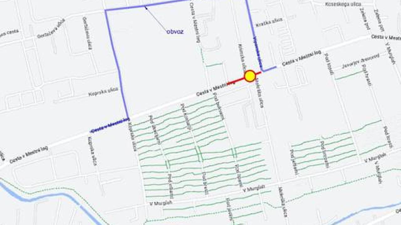 Cesta v Mestni log bo zaradi gradnje komunalnih vodov in rekonstrukcije na odseku med ulico Pod bukvami in Vipavsko ulico za ves promet zaprta predvidoma do 20. avgusta 2023.
