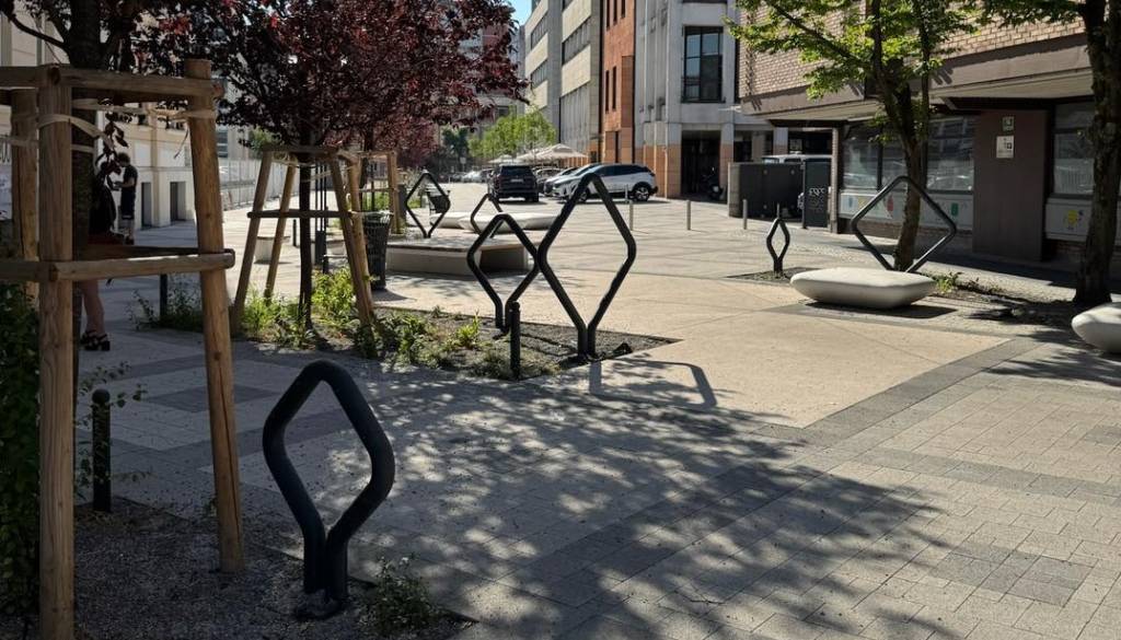Na novo so postavili stojala za kolesa, klopi, zelenice in grmičevje ter uredili območja za odpadke.