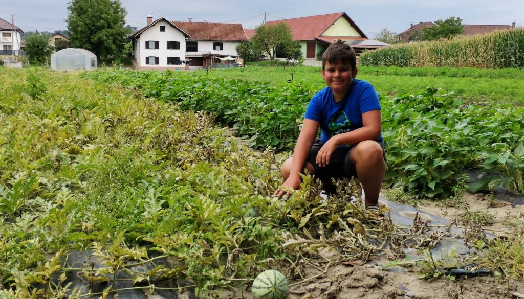 Letos že četrto leto družina goji lubenice, ki so del ponudbe Hanželičeve kmetije. Lubenice so glavna niša mladega kmeta, a v njegovi posodi ob cesti se znajdejo tudi domače melone.