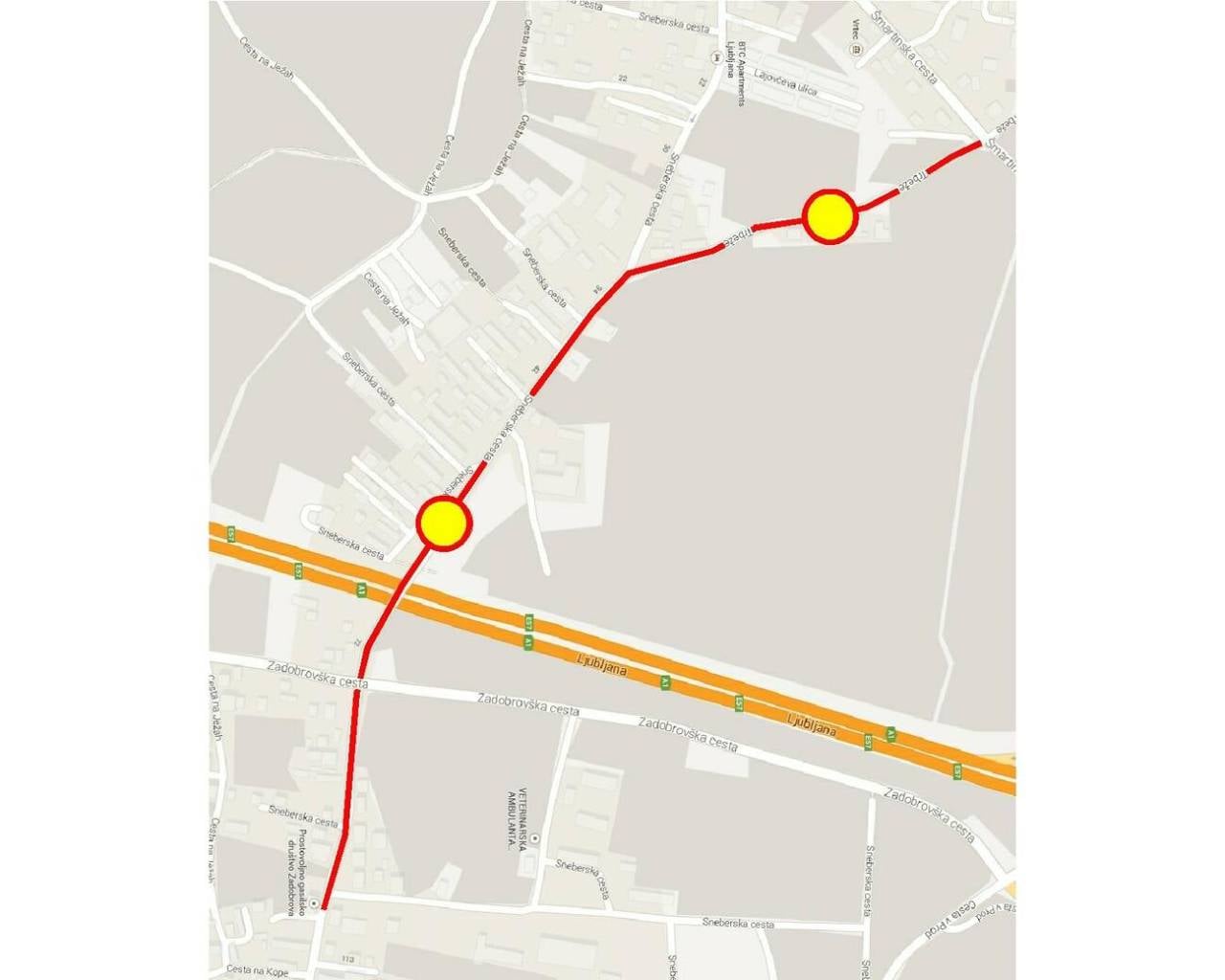 Danes ob od 16.15 do 18. ure za ves promet zaprt del ceste Trbeže, od 16.50 do 18. ure pa bo za ves promet zaprt del Sneberske ceste.