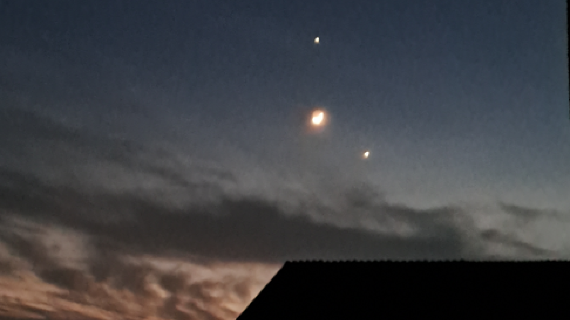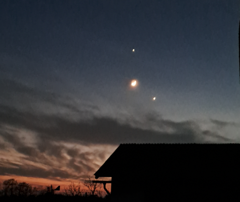 Pri fotografiji je na vrhu Jupiter, na sredi Luna, desno spodaj pa Venera.