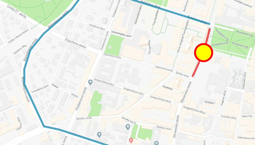 Zaradi državne proslave ob dnevu državnosti bo danes, med 20. in 23. uro za ves promet zaprta Slovenska cesta na odseku med Šubičevo ulico in Erjavčevo cesto.