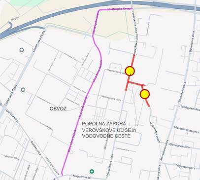 Zaradi obnove ceste in pločnikov bosta od 22. aprila, od 9. ure naprej, do predvidoma 27. aprila za ves promet zaprti Verovškova ulica in Vodovodna cesta.