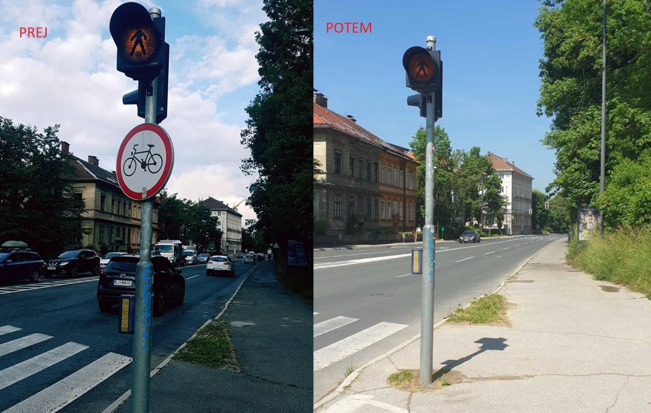 Na Karlovški cesti so odstranili znak za prepoved kolesarjenja.