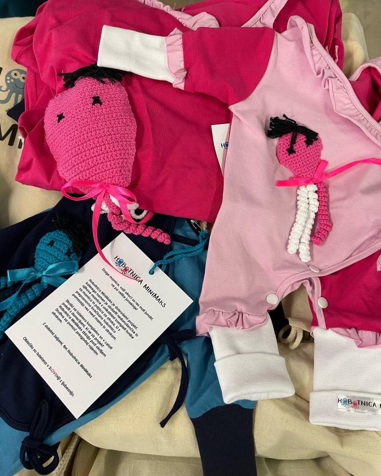 V sklopu dobrodelnega projekta Hobotnica MiniMaks, katerega pobudnica je Mihela Vajda Ščap, so na oddelku za intenzivno nego in terapijo novorojencev v ljubljanski porodnišnici predali prvi set tridesetih kompletov za mamice in nedonošenčke.