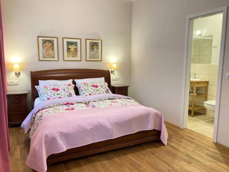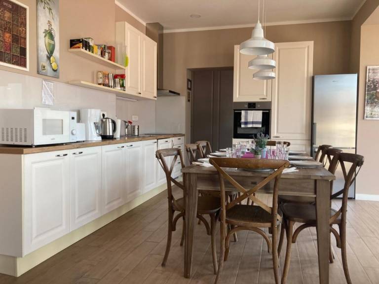 Tudi apartma Milena ima tri udobne spalnice, vse z zasebno kopalnico, veliko, popolnoma opremljeno kuhinjo in udobno dnevno sobo. Stanovanje je klimatizirano, okna so zvočno izolirana in imajo zatemnjene zavese.