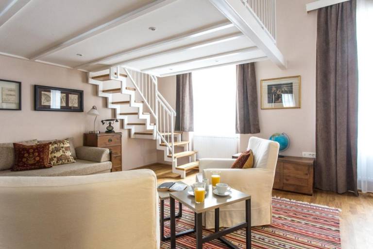 Apartma Ivan, kjer lahko, četudi na zelo moderen način, okusite kanček Cankarjevega življenja na Trubarjevi, se nahaja v prvem nadstropju in meri 130 m².