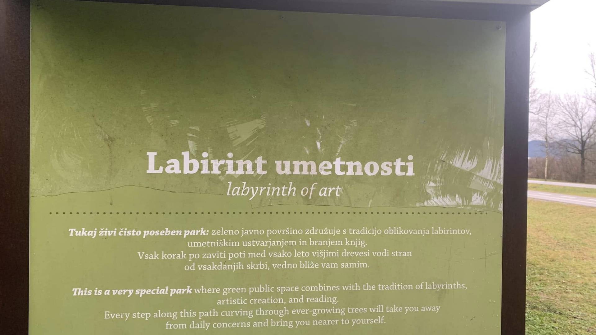 Gre za zelen labirint iz skoraj 300 smrek, med katerimi je pot s klopcami za posedanje, na tleh pa so na kovinskih tablicah napisane misli o umetnosti, hoji, knjigi in življenju.