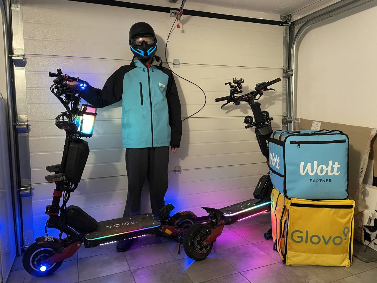 V lanskem letu pa je stopil še korak dlje in se odločil, da bo začel s temi skiroji dostavljati tudi hrano za podjetji Wolt in Glovo. Kot pravi sogovornik, lahko na tak način združi prijetno s koristnim.