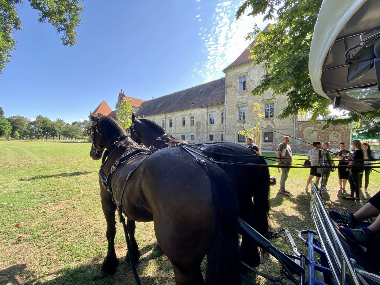 Električni avtomobili, avtobusi, skiroji, rolke … in zdaj tudi kočije. V dvorcu Rakičan so predstavili inovativno e-kočijo, ki ima vgrajen elektromotorni pogon s hranilnikom električne energije.
