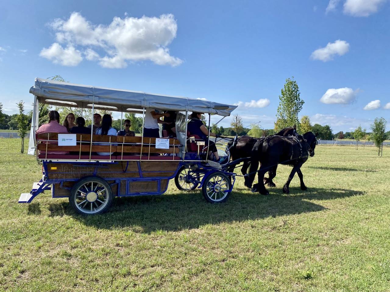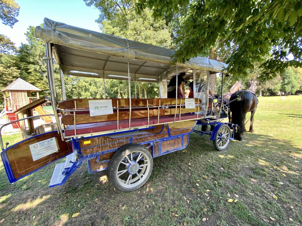 Električna kočija v RIS dvorcu Rakičan sprejme 12 oseb, z njo je bilo izvedenih že več testnih in promocijskih voženj. Omogoča tudi dostop osebam na invalidskem vozičku.