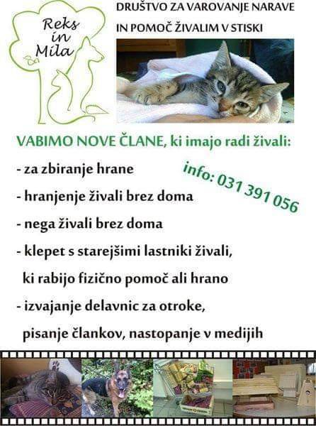 Društvo Reks in Mila je v zadnjih dveh tednih dobilo veliko novih živali, ki jih morajo oskrbovati. Prostovoljci društva prosijo za pomoč.
