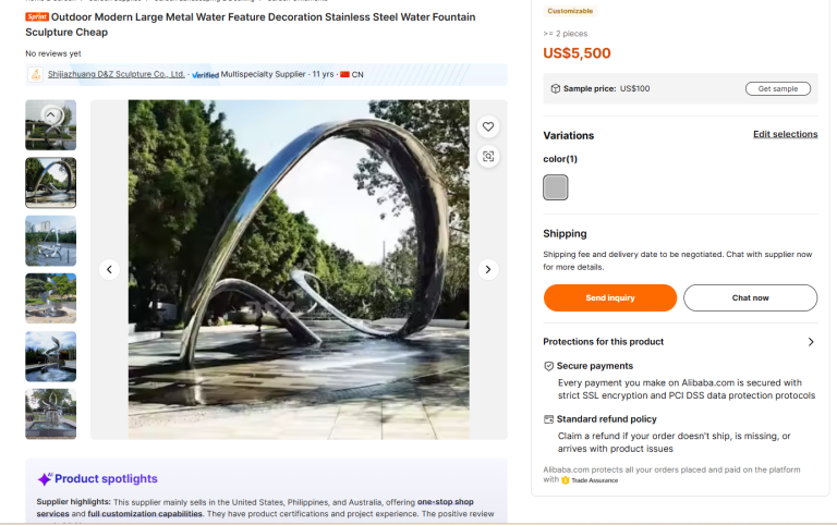 Na platformi je mogoče najti tudi podobne skulpture drugih kitajskih ponudnikov, denimo Shijiazhuang D&Z Sculpture Co., Ltd., ki svojo različico prodaja za 5500 dolarjev, a prav tako brez odziva trga.