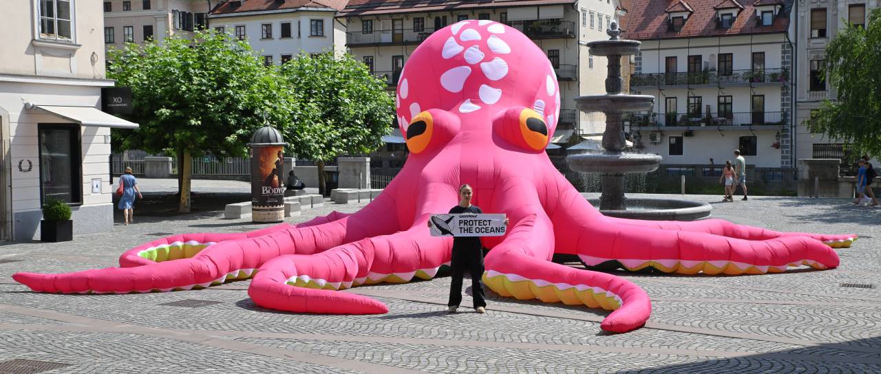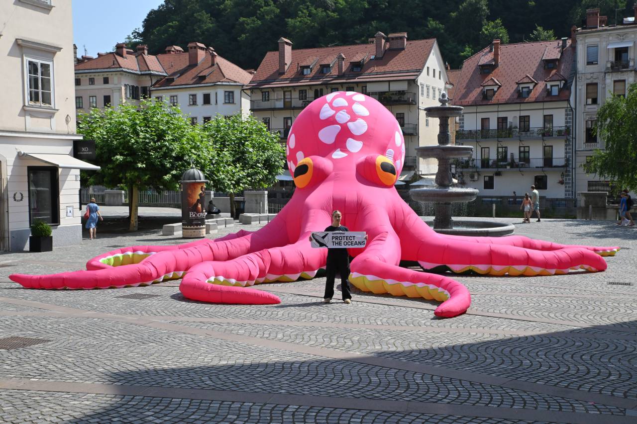 Aktivisti Greenpeacea Slovenija so zunanjo ministrico Tanjo Fajon in predsednika vlade Roberta Goloba danes pozvali k sprožitvi procesa ratifikacije sporazuma ZN o oceanih, ki ga je Slovenija podpisala septembra lani. Ob tem so v Ljubljani napihnili ogromno hobotnico, ki simbolno opozarja na problematiko zaščite oceanov.