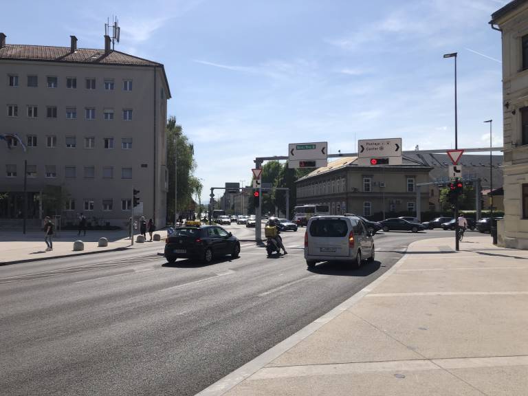 Na tem mestu je na mnogih semaforjih luč za absolutno prednost na desno. Obstaja nevarnost, da kakšen nepozoren voznik avta to zamenja in spelje.«